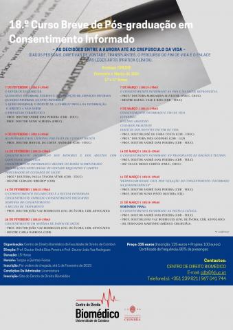 Para mais informações, contatar o secretariado (cdb@fd.uc.pt). Obrigada!