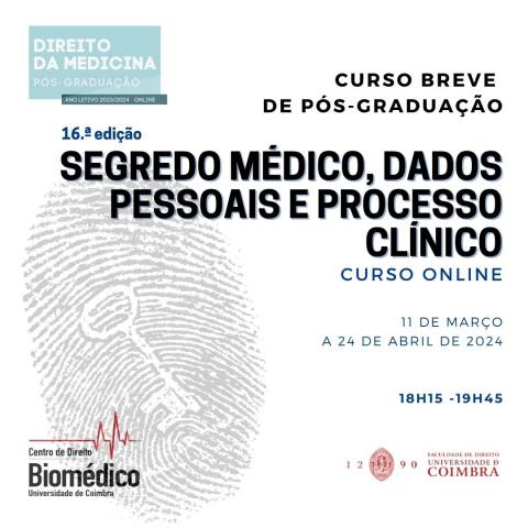 Inscrição: Por ordem de chegada, até 9 de março no site do Centro de Direito Biomédico.